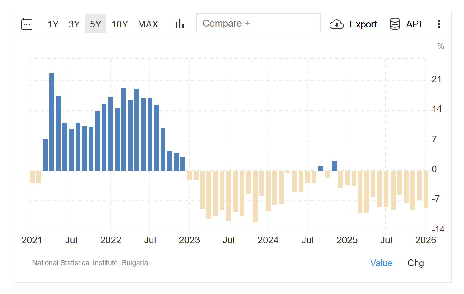 Кредитите на домакинства вече надхвърлят 29.3 млрд. евро в края на февруари 2026 година. Спрямо същия месец на 2025 г. те се увеличават с 20.7% (20.7% годишно повишение през януари 2026 година).