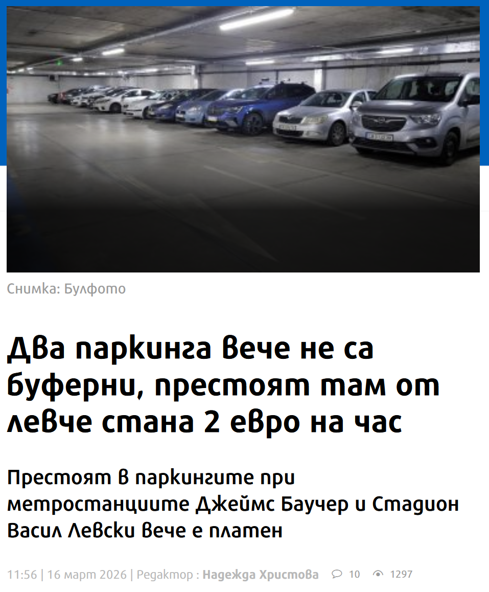 • Два паркинга вече не са буферни, престоят там от левче стана 2 евро на час