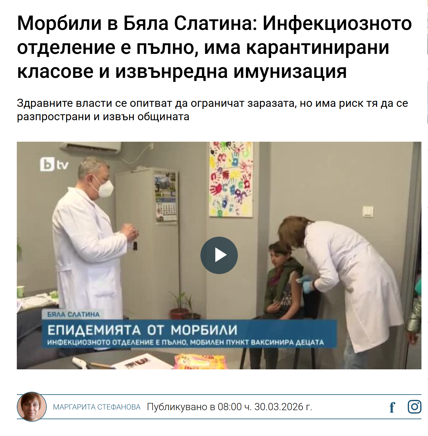 • Морбили в Бяла Слатина: Инфекциозното отделение е пълно, има карантинирани класове и извънредна имунизация