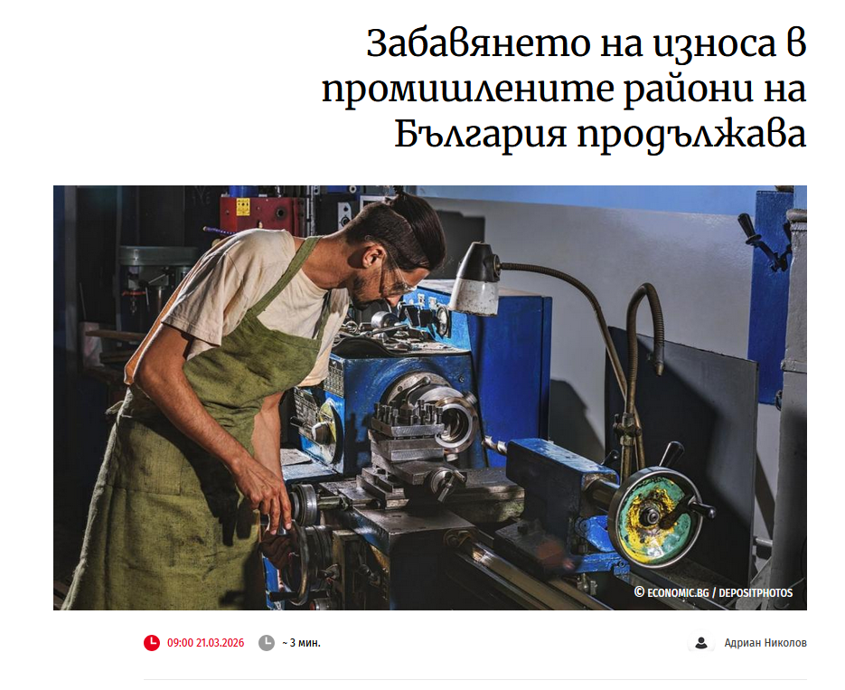 • Забавянето на износа в промишлените райони на България продължава
