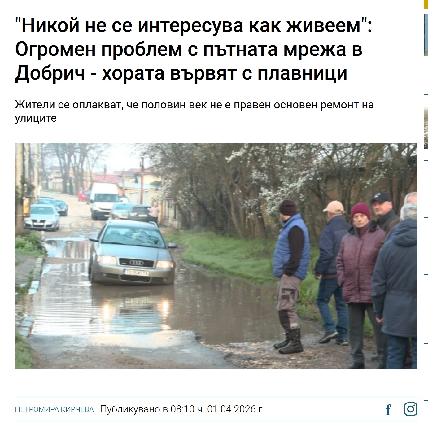 • „Никой не се интересува как живеем“: Огромен проблем с пътната мрежа в Добрич – хората вървят с плавници